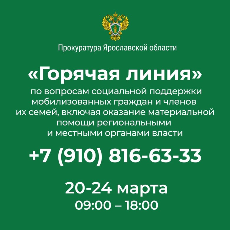 Тутаевская межрайонная прокуратура проводит "горячую линию" по вопросам социального обеспечения мобилизованных граждан и членов их семей.